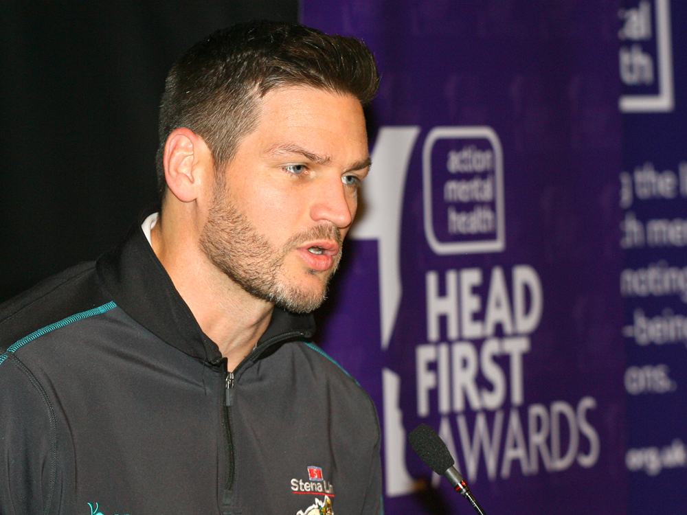 Belfast Giants’ chief coach Adam Keefe Belfast was also in attendance to hand out the specially-commissioned awards, hewn in Action Mental Health’s trademark head shape.