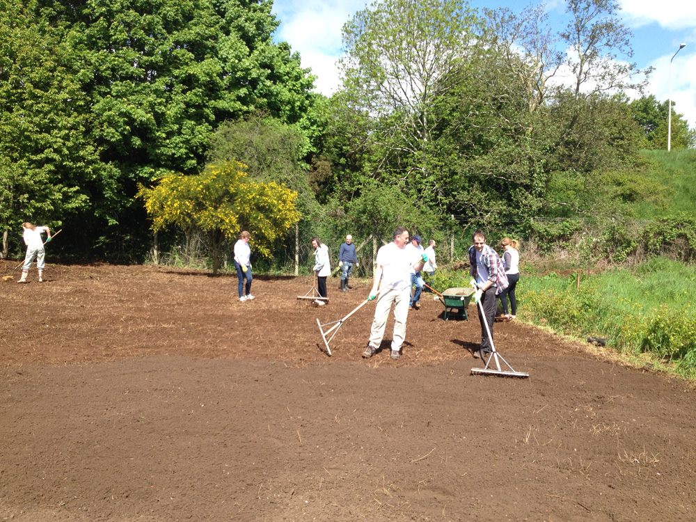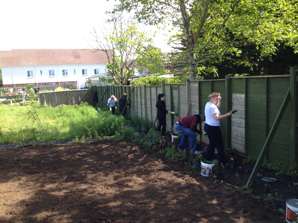 A big thank you to all those involved in the volunteer day, which included tasks such as, moving and spreading 24 tons of soil for our new lawn area, painting a 60 foot fence both sides!, weeding our raised beds and potato plots, washing dozens of donated garden planters to be reused and sold with summer plants, removing litter and brushing pathways.